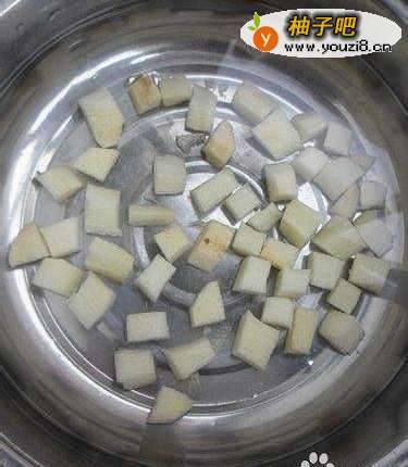 4山药去皮后也切成小块状,放入清水中浸泡,避免氧化。