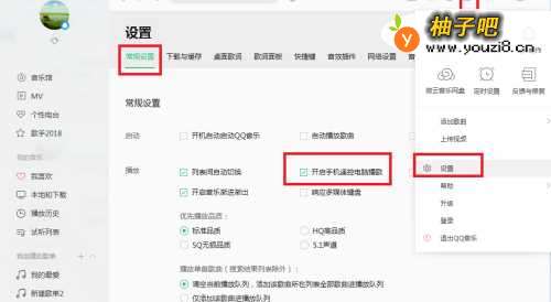 3开启手机遥控电脑播歌:点击主菜单——配置——常用配置——勾选:开启手机遥控电脑播歌。当手机QQ音乐和电脑QQ音乐同在一个无线网络环境下就能用手机控制电脑了。(不同网络没有试过)