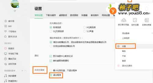 5关闭时退出程序:通常的音乐播放关闭时是最小化到托盘,不符合我们大多数人的习惯,这时能点击点击主菜单——配置——常用配置——关闭主面板——选择:退出程序。这样就能点击关闭时就能直接退出程序了。