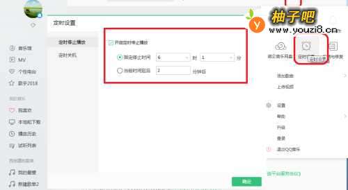 定时停止播放歌曲:启用QQ音乐后点击右上角的主菜单——定时配置——定时停止播放——勾选:开启定时停止播放——配置停止时间以及延后。