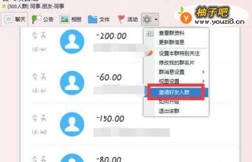 2然后在弹出的下拉框里面,点击邀请好友入群