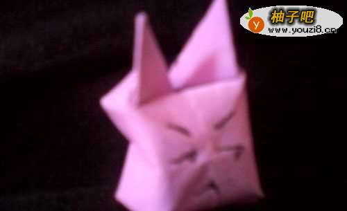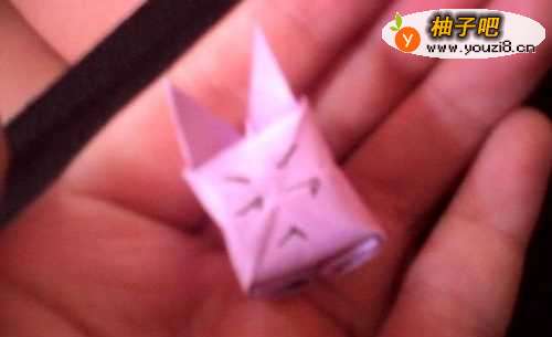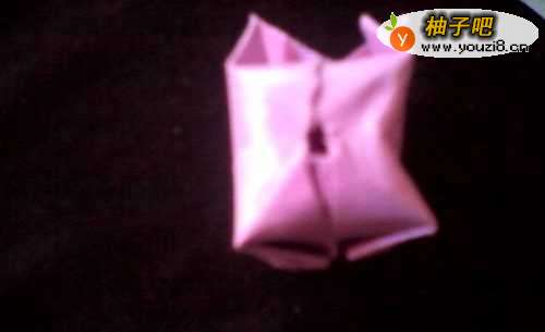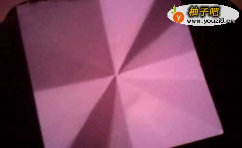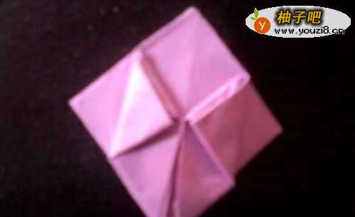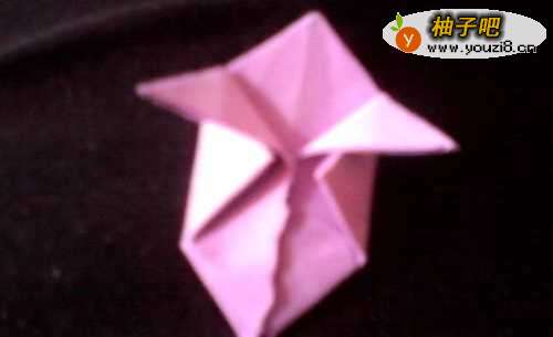 6翻过来,根据以上步骤也折成俩小角在中心对折。