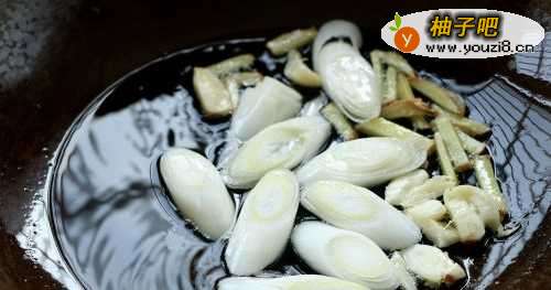 2大葱葱白葱叶分开切成段;大蒜拍碎;生姜切成丝;青红椒切成小块;