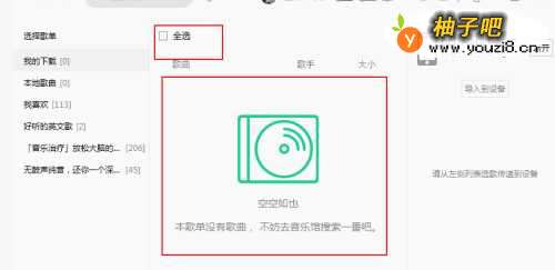 4我们来到如下图传歌的界面,选中我们喜欢的歌曲,也能点击全选,