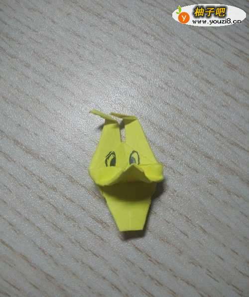 24将最上面的两个尖角沿所画虚线向下翻折(耳朵形成)!效果如下!