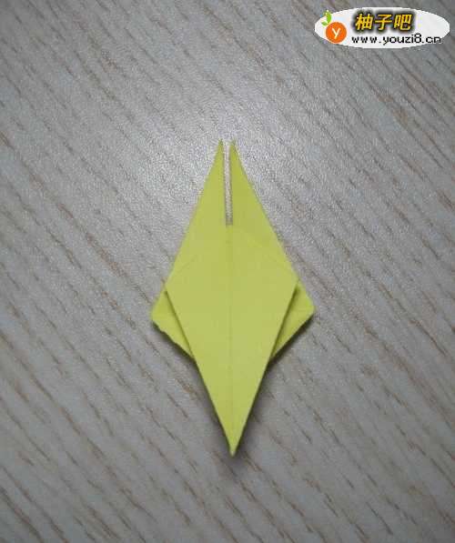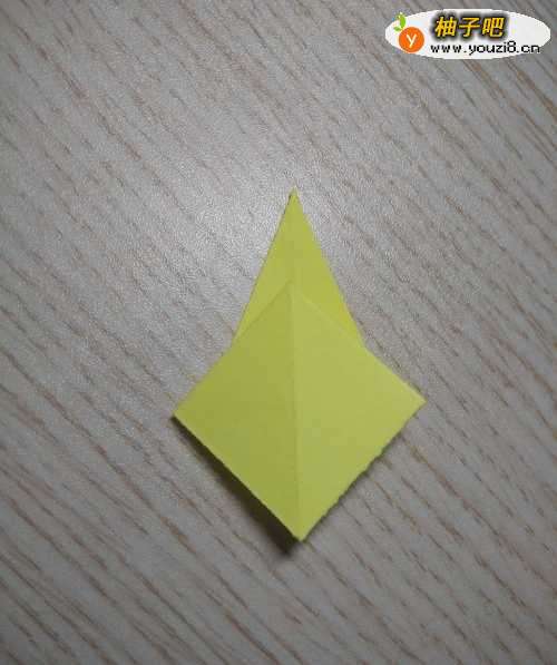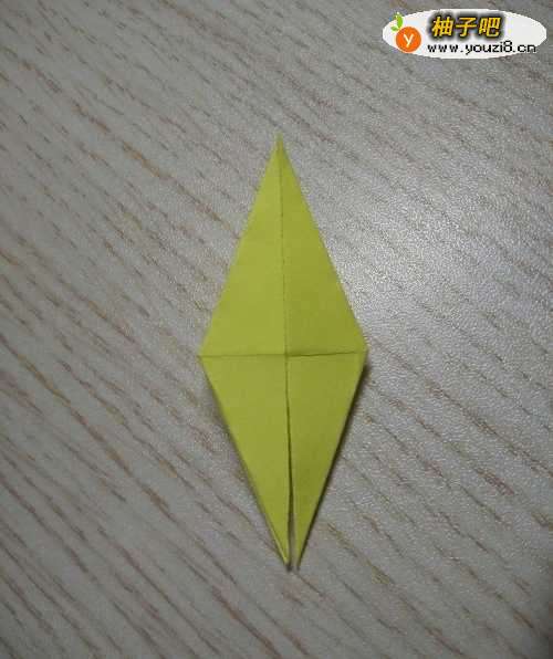 6将底尖角的第一层向上拉开,再把左右两边向内折叠,压平!效果如下!
