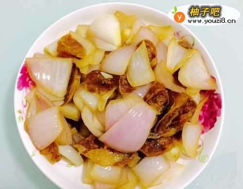 6最后洋葱炒至变色之后即可关火,这道菜不需要额外放盐了,因为腊肠本身就是咸的。当然如果您口味重能少放一些盐,喜欢脆一点的洋葱就缩短翻炒时间。