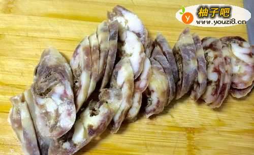 首先将腊肠洗净切片备用,切片之后能先蒸熟,也能直接放油里面炒熟。个人觉得蒸熟味道更好一点。