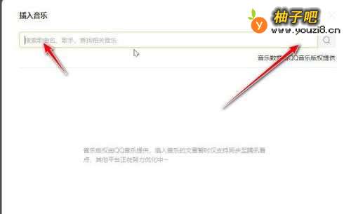 3在插入音乐的界面在搜索框内输入音乐相关信息。