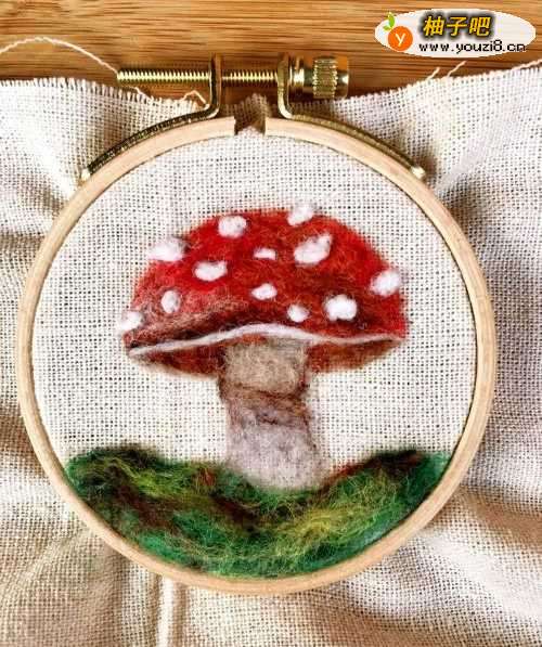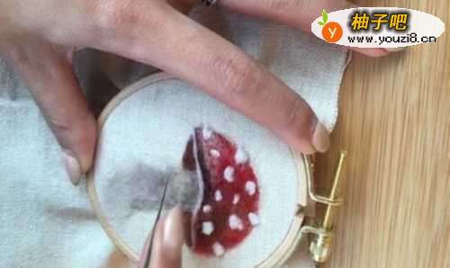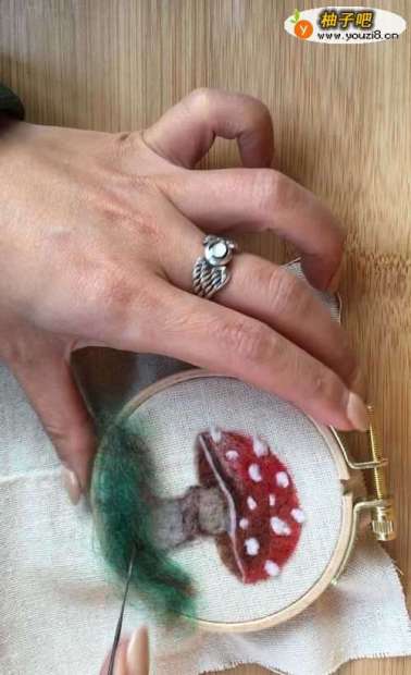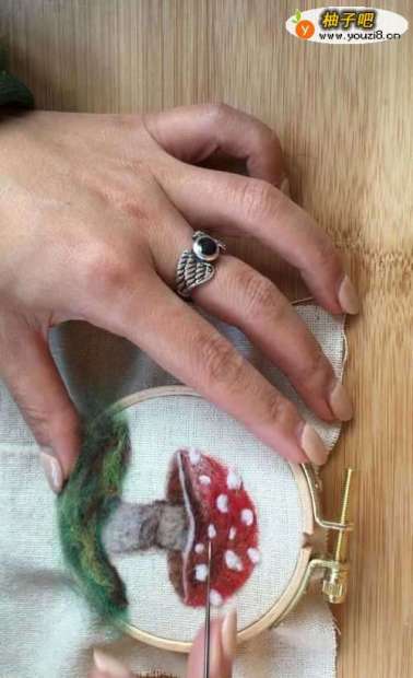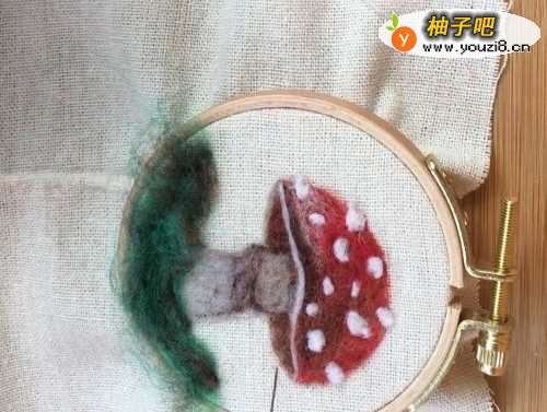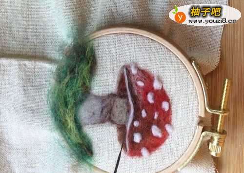9白色羊毛球点缀蘑菇斑点,戳针稍微固定