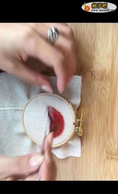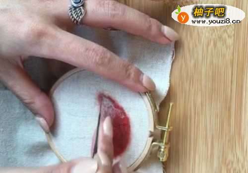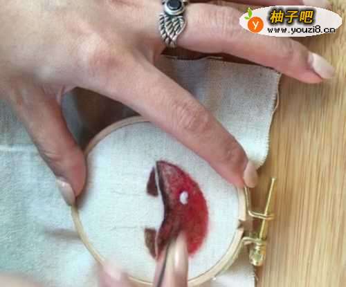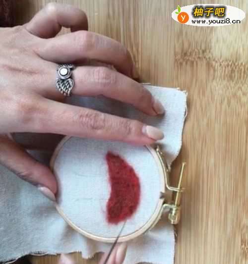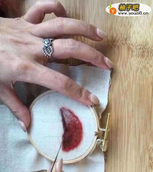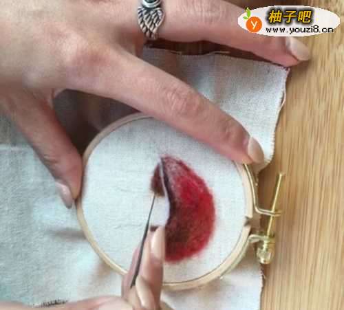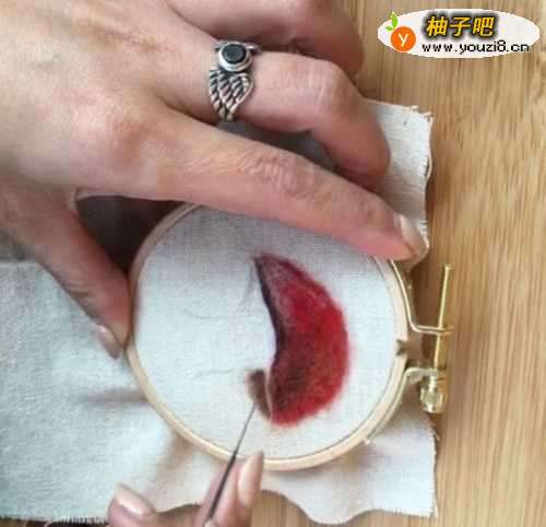 18调整整幅作品型,修整不平整之处,戳针戳均匀平坦