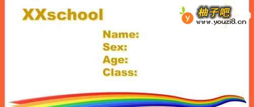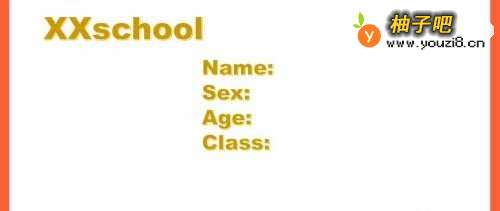 3学校下方右侧写上name,sex,age,class等个人信息,如图: