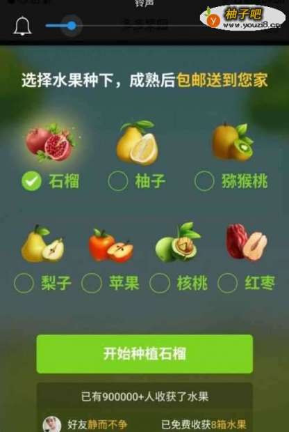 3新手首先选择想要种的果树,选择好后果树成熟后该水果就能包邮送到家,期间果树品种不可更换。