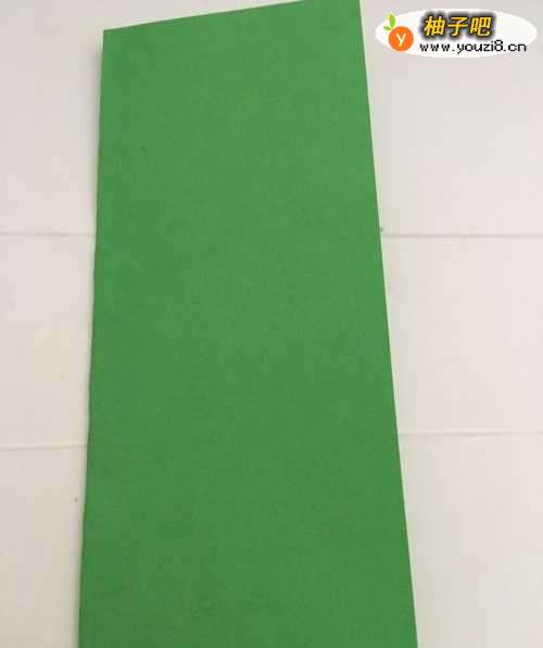 第一步 把一张16厘米X16厘米的绿色彩纸 从左向右折叠整齐