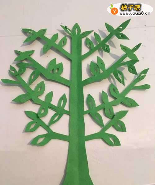 剪纸怎么剪一颗小树 是一个比较简单的剪纸办法 就是把彩纸左右折叠 画上树的枝子 和树的容易裁剪的树叶子 剪去多余的部分 然后再取开 压平就行了 下面我们就和小朋友们一起裁剪一颗小树吧