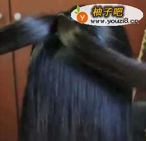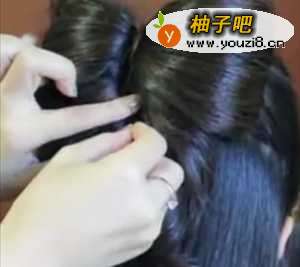 33将发根处用梳子打毛,显得更为蓬松,将发束向内卷成蝴蝶结的形状,另一边同样~