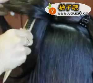 22将这束头发分开成两股,用卷发棒将两股头发分别夹成大卷
