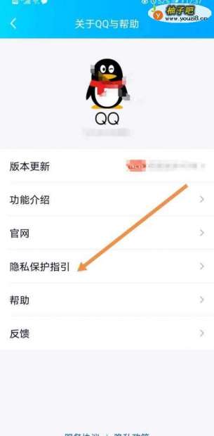 4点击开启关于QQ与帮助,如图所示找到隐私保护指引。