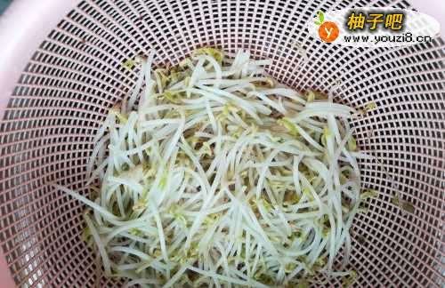 2焯水后的豆芽迅速过凉水,能保持豆芽的脆感。