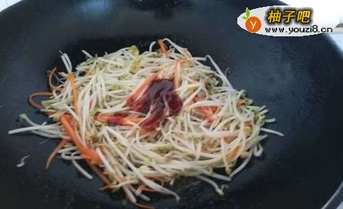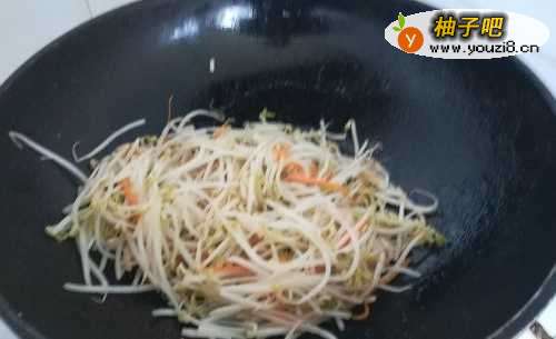 5倒入豆芽,大火翻炒七成熟,加入盐、醋,翻炒均匀。