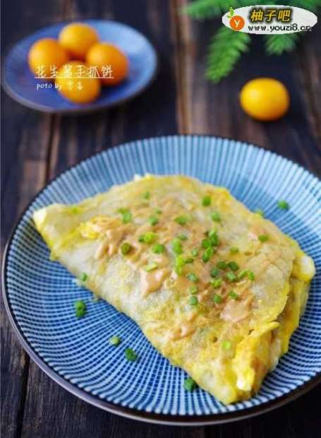 备好食材:速冻手抓饼,鸡蛋,花生酱,小葱;