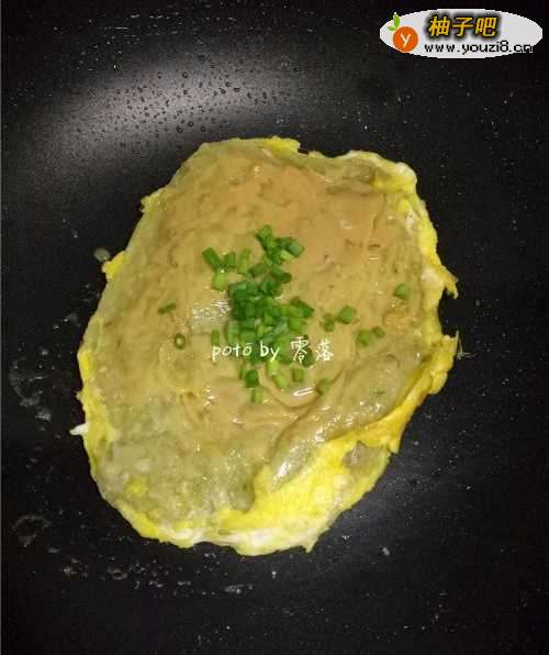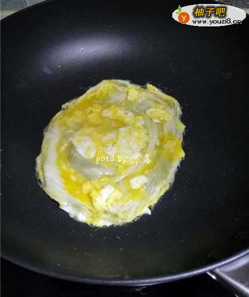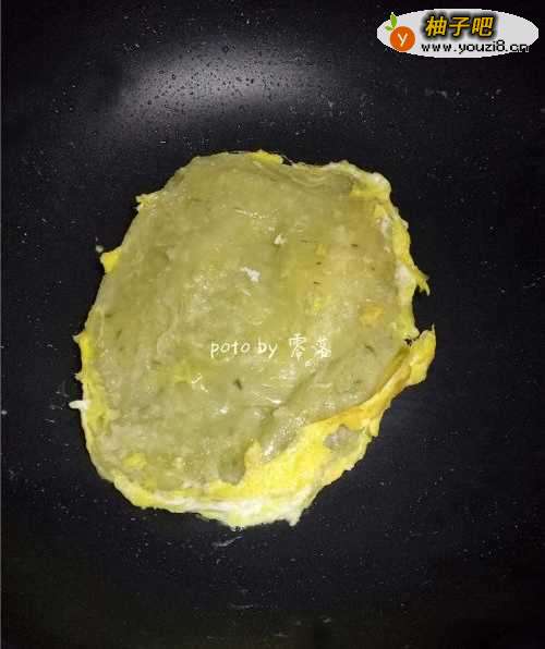 4鸡蛋磕破,将蛋液倒在手抓饼上;