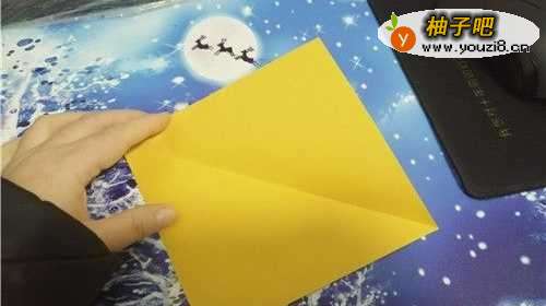 先把彩纸的两角对折,然后把两侧的角向内折,如图所示。
