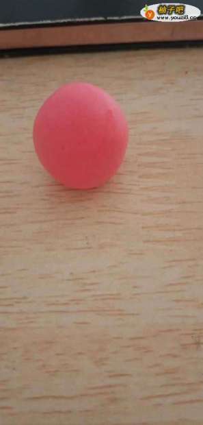 我用的白色粘土,在里面加入一点点大红颜料混合成粉红色的粘土,捏成一个圆球