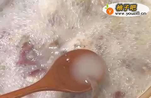 4加入开水,没过羊杂,大火烧开。开锅后撇去浮沫,转中火,煮20分钟左右。