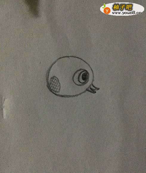 2如图画出金鱼的嘴巴,要稍向下倾斜,画出半张着的效果。