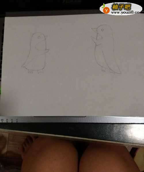 先准备好一张A4纸,用其他白色纸也能,用黑色铅笔画出企鹅的大致形状,不需要太精细,形状明确即可。