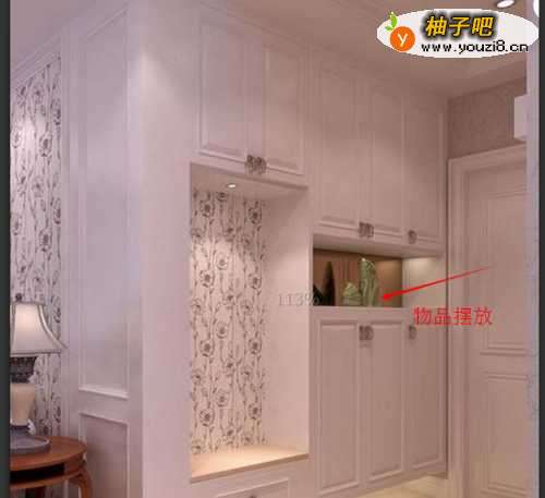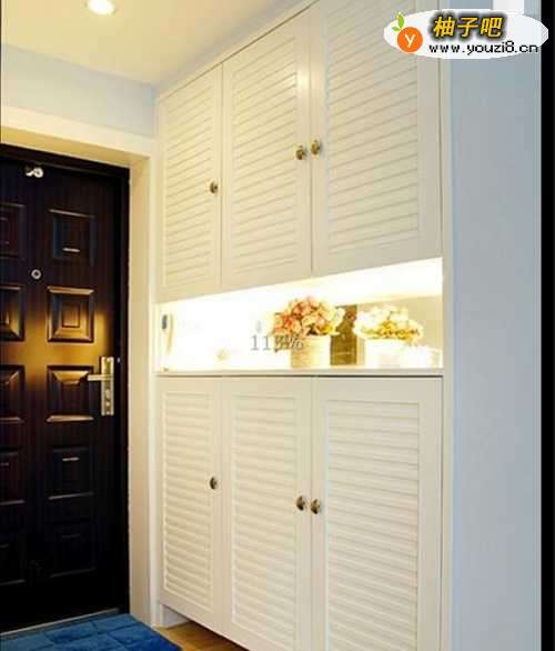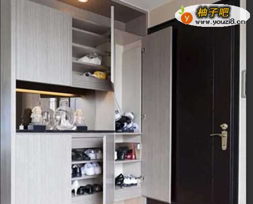7当鞋柜背面靠在墙上的话,鞋柜的上方能做成衣柜,增加收纳空间,当鞋柜侧面靠在墙上的话,鞋柜的上面能做成博古架,也能是镂空的隔断,这个根据实际情况而定。