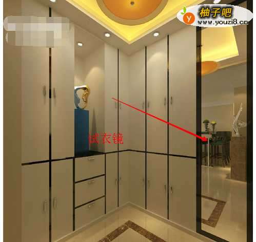 3然后是试衣镜。毕竟我们出门前都要正装的。如果不太喜欢镜子,能考虑用灰镜。注意试衣镜不要正对门口。
