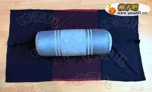 先用面料比对抱枕的大小。面料需要能包裹着抱枕的大小。