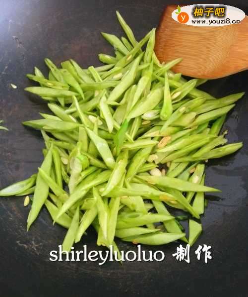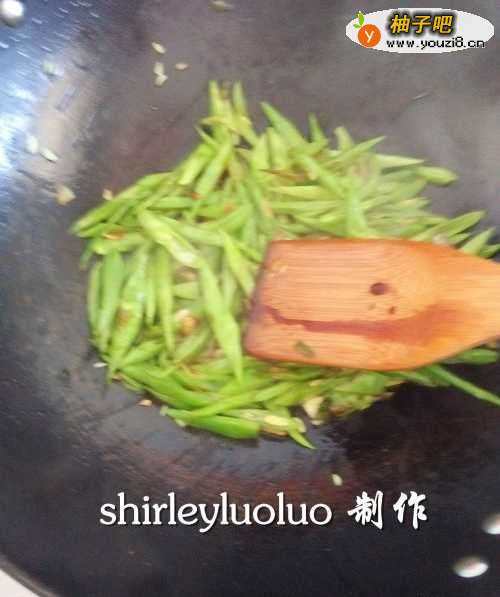 2放入豆角翻炒。颜色会变得更为绿,赏心悦目!【小火】