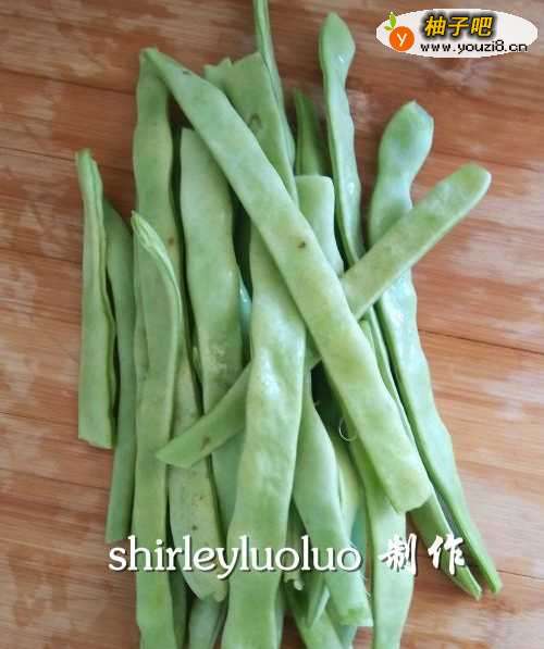 豆角抽筋后洗净,葱、蒜、生姜洗净,备用。