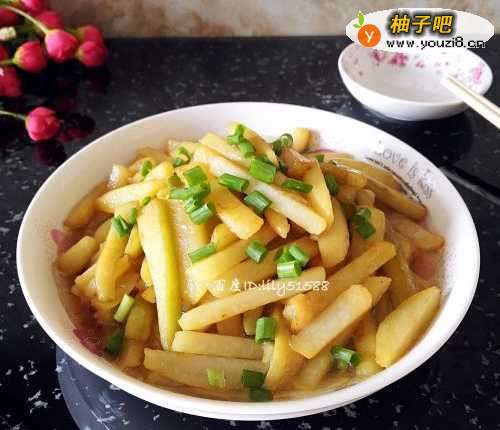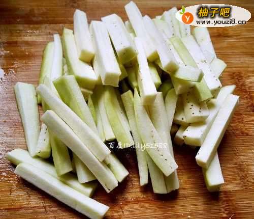 6用炸过茄子的油,接着把土豆放进去炸一下。