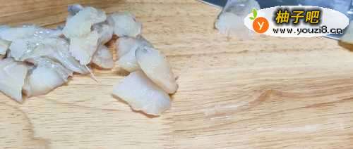 3然后用流动水冲洗干,净沥干水分后斜刀切块。