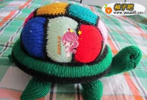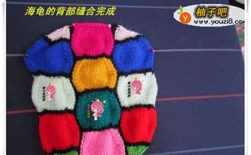 10最后就是组装了。用3两左右球球棉,除了塞满头、尾和脚外,全部填入主体内,刚填入时像个足球,您需要把它挤压一下,使膨松棉在里面均匀些、踏实些,然后用钩针从上下两片里边的挑针处缝合,当然要用同一色的线,记住在缝合时,尽量使膨松棉充满边沿,这样才更有立体感。然后将其余零件尽时仔细的缝到主体上,一个漂亮的小乌龟就大功告成了!