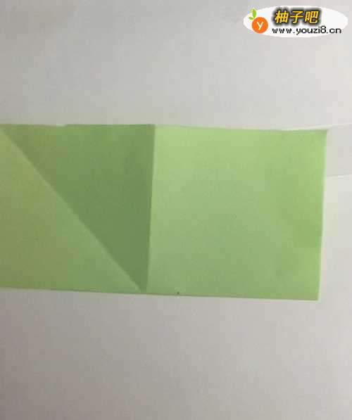 3第三步 折出双三角形之后 掀起来上层右下角沿中线向上角折叠 折后取开 然后上尖角向下对齐折痕在边上刮折一点小折痕再取开
