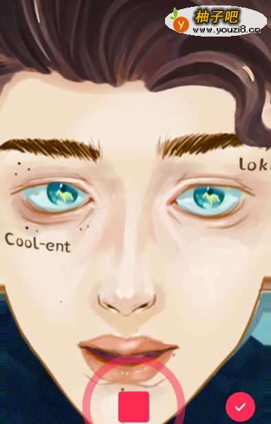 4应用特效后,对准屏幕能看到自己就变成这个卡通头像,我们点击录制按钮。