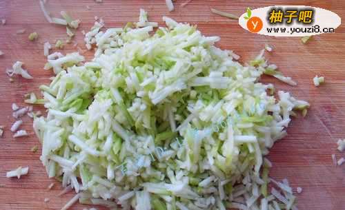 2先挖去角瓜的瓜瓤,将角瓜切成小块,不用切得太细。