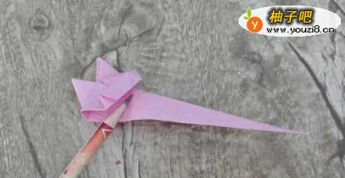 11在铅笔所示的地方把长角翻折到里面去,如图所示