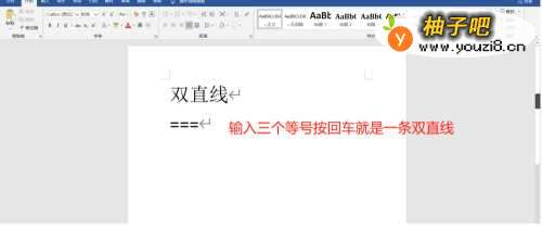 我们在Word中输入三个等号(=)按回车就是一条双直线