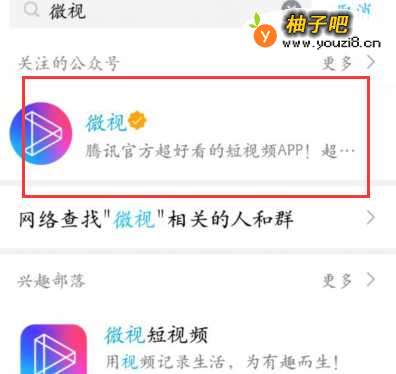 首先开启qq在搜索栏直接搜索“微视”开启它,因为有时候我们找不到,所以能用这种办法。如图所示