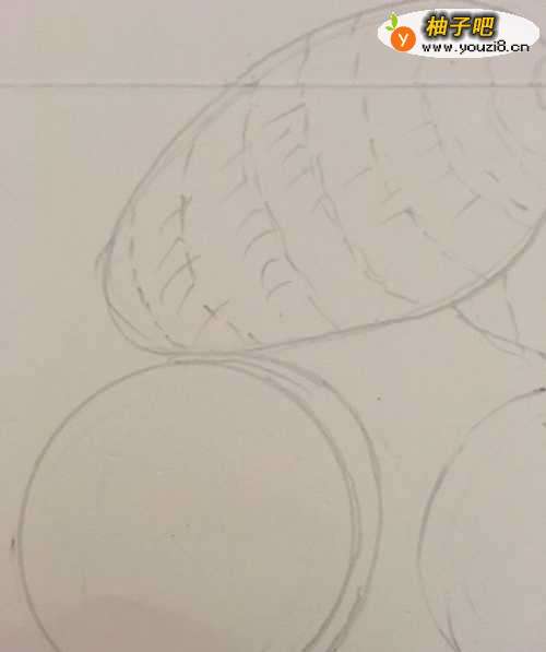4第四步 再画上这组图的第三部分 半个芋头 这个果肉是白茬的
