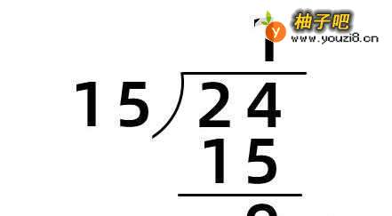 4作差,用24-15,得到的结果为9,留作余数,如下图所示: