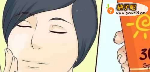 5擦防晒霜。许多面部保湿霜都有15到30的防晒系数。注意标签上的“SPF 15”或“SPF 30”字样。购买防晒霜时要确保它不会堵塞毛孔,也就是不会引起粉刺,尤其是在购买面部防晒霜时。不要使用含油的防晒霜。