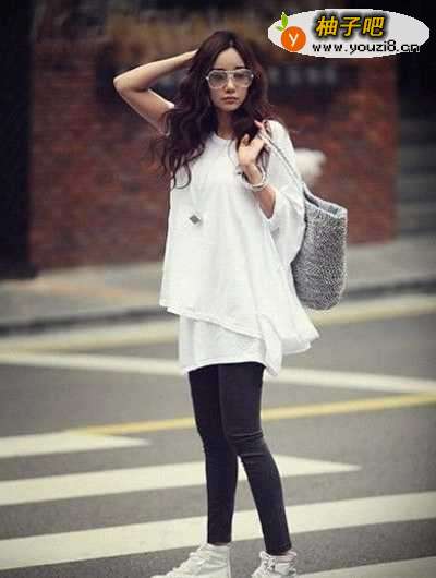 打底裤搭配长衫,绝对不会搭错。