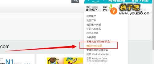 2在我的账号的下拉页面中选择【我的prime会员】。
